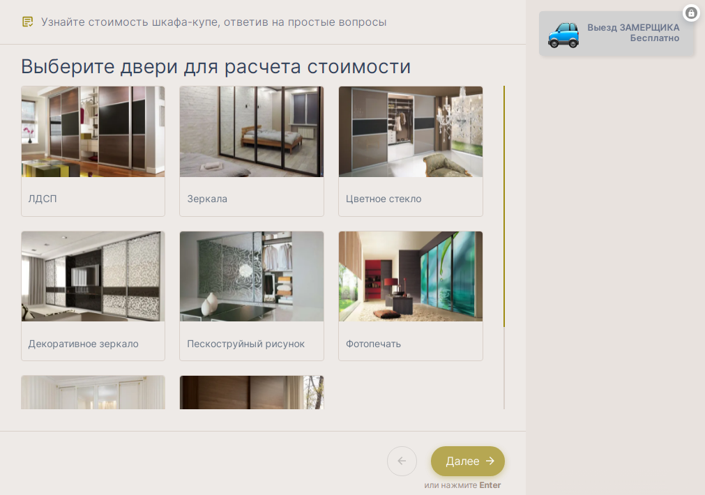 Рассчитайте стоимость вашего шкафа за 2 минуты